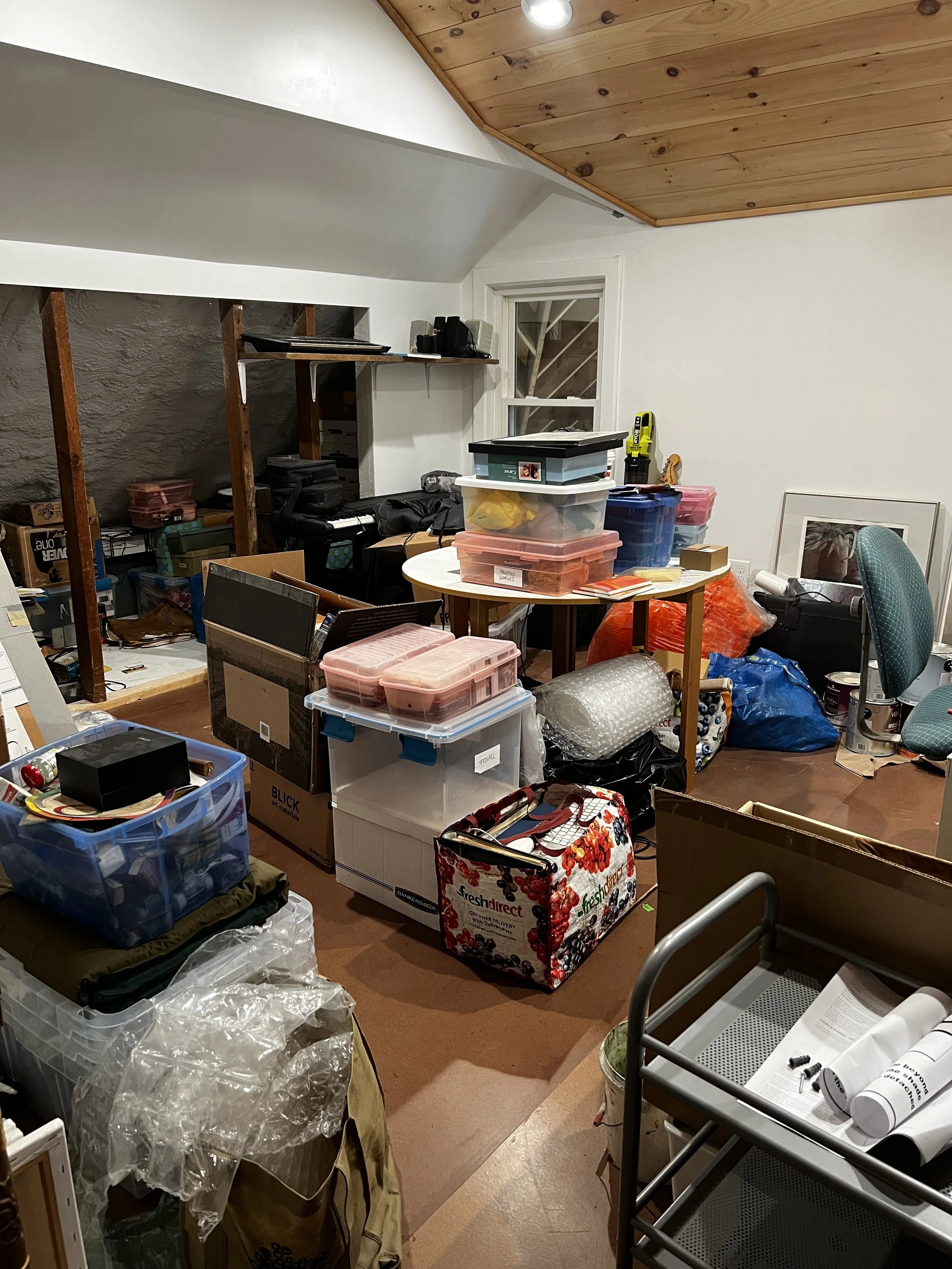 As an adult in Brooklyn, I have never had a proper space. I had a bedroom/studio, or studio/storage space. We called it the “art area”, but you usually had to move stuff out of the way to even find enough space on the floor. There are so many beautiful studios, but I just want one that works. This is a problem of false starts and prioritizing compromise over pleasure and ease of use. Come January I am going to fix this.